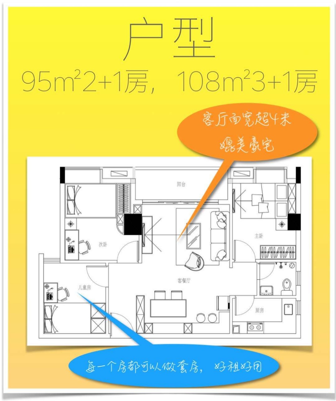 戶型多樣,自由選擇,戶型方正,使用率高!