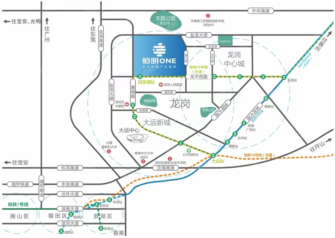 同時,恒明ONE距離龍崗國際大學(xué)城3公里。是未來深圳產(chǎn)學(xué)研資源和高知人才最集中的區(qū)域。
