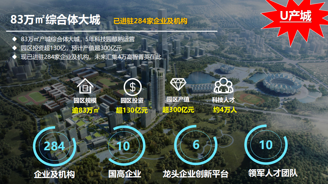 園區分四期開發:一期約 17 萬平方米建面,包含 7 棟建筑,以部分研發辦公和生活配套物業、綜合行政服務中心組成,是園區第一批開發交付使用、樹立園區形象的精品之作, 【U 空間】占據一期的龍頭 C 位,目前現樓在售的生活配套產品,具有明顯的先發優勢。