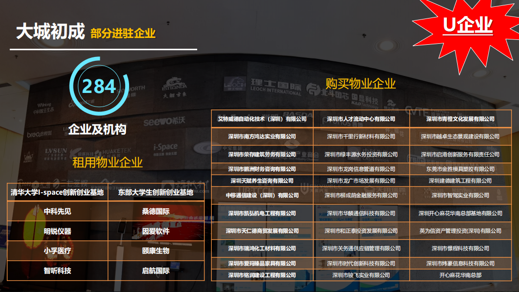 啟迪協信科技園是深圳市投資推廣重點項目,也是省、市級重點建設項目,榮獲中國產業新城運營商十強,工業投資十強等重量級榮譽的大型產城綜合體。項目集總部辦公樓、研發辦公樓、商務公寓、商業步行街于一體。總占地約19.27萬㎡,總建筑面積約83萬㎡,總投資超130億元(其中龍崗區政府平臺公司產服集團占35%的股份),將建設成為南中國最大的科技成果轉移轉化示范園區。項目規劃約40萬平產業研發面積,其中約40%自持運營。園區于2018年底開園,目前已進駐清華i-space和港中大兩個創新創業基地、約284家優質企業,其中全球500強企業1家,國高企業10家,重點入駐企業包括京瓷、富士康創新中心、海爾,中科先見,開心麻花、市總公會、東部公交等知名企業,未來將會進駐千家企業,達到年產值300億元的規模!