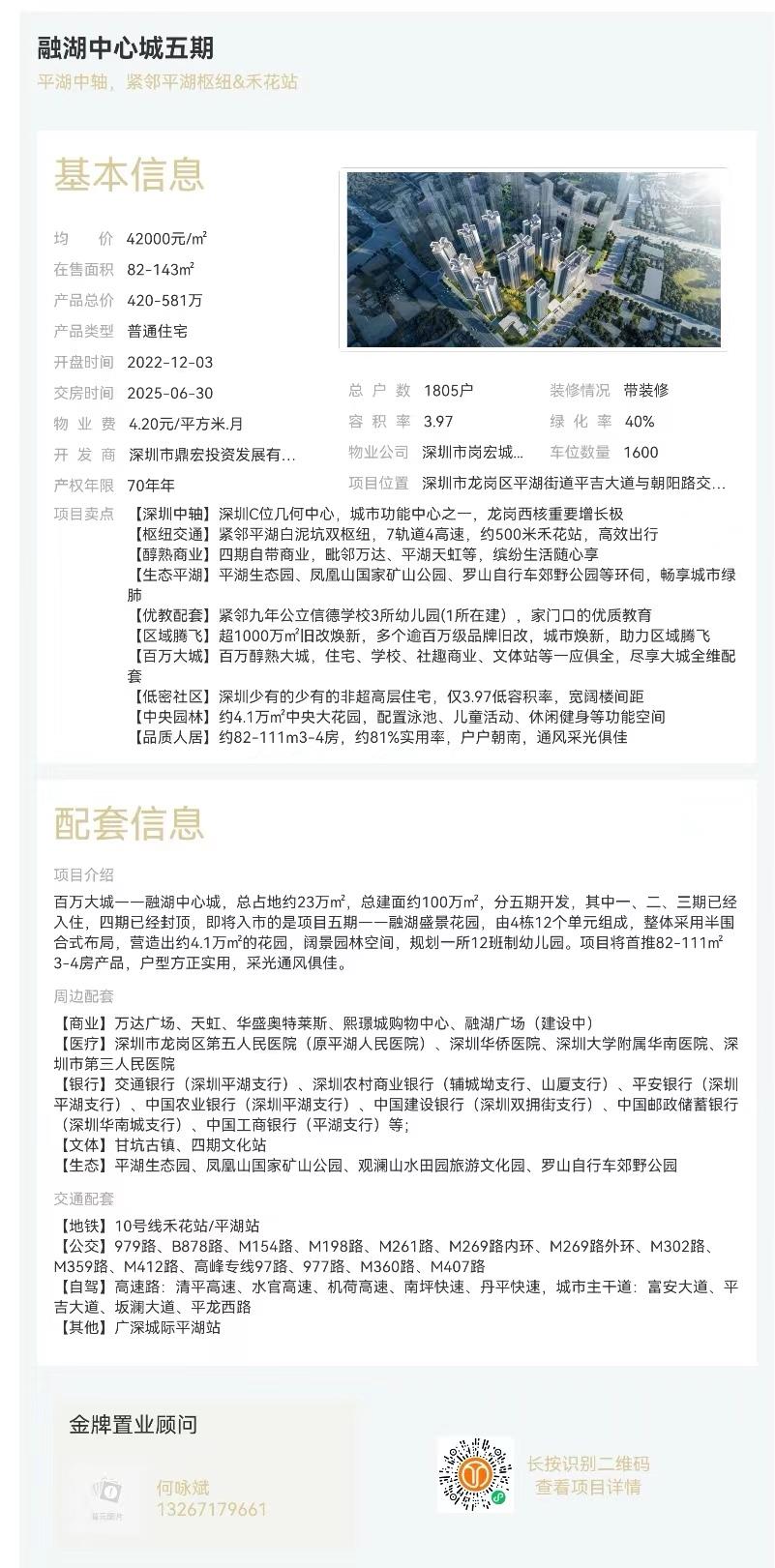 融湖中心城五期|均價約42000元/平