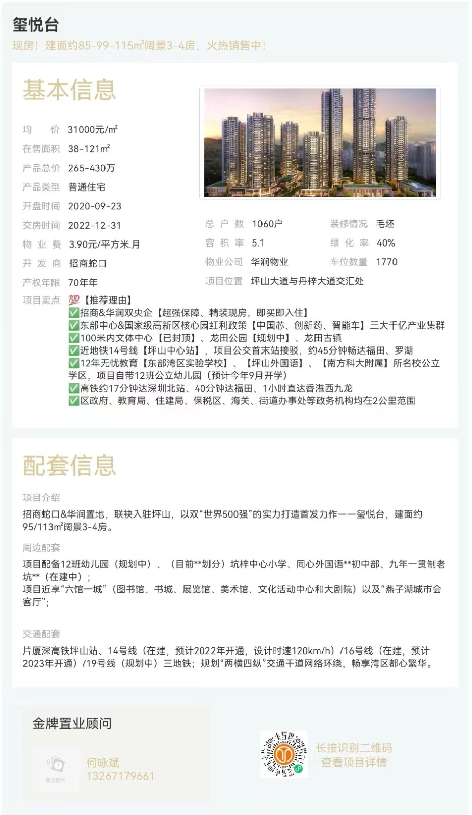 坪山中心,單價(jià)3字頭,建面約85—113㎡闊景3-4房。地鐵14號(hào)線坪山中心站(在建中)、19號(hào)線(規(guī)劃中);項(xiàng)目自帶公立12班幼兒園,(目前學(xué)