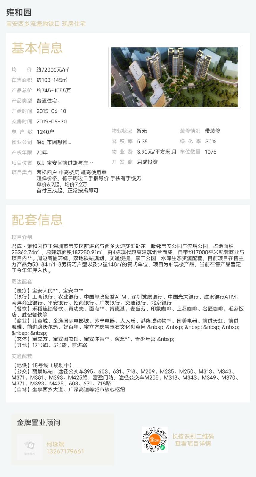 樓盤(pán):雍和園物業(yè)類(lèi)型:普通住宅、戶(hù)型:3室、4室面積:約103-145平米總價(jià):約745-1055萬(wàn)聯(lián)系人:何詠斌聯(lián)系電話(huà):13267179661